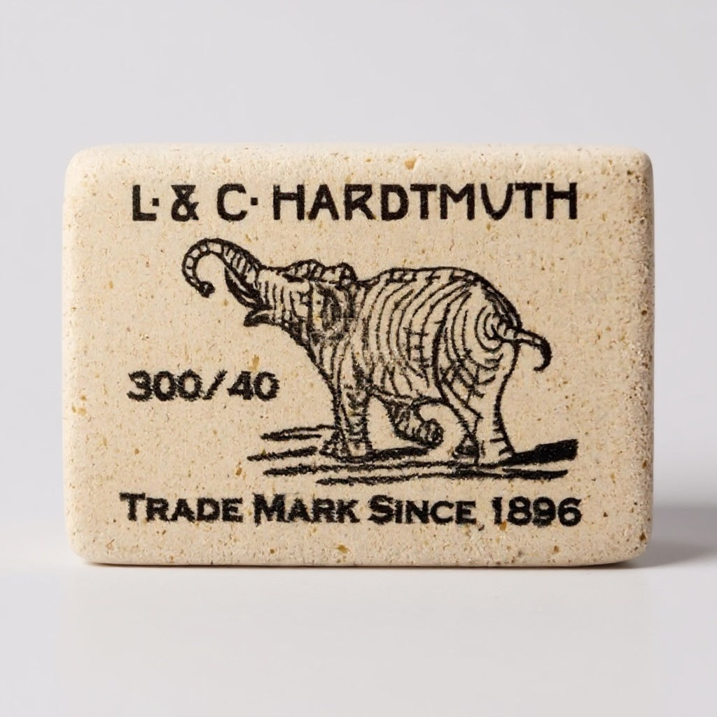 Está hecho de caucho natural y piedra pómez como los borradores originalmente fueron, sin plásticos ni ftalatos añadidos, suave para borrar líneas de grafito con durezas de 3B a 3H.