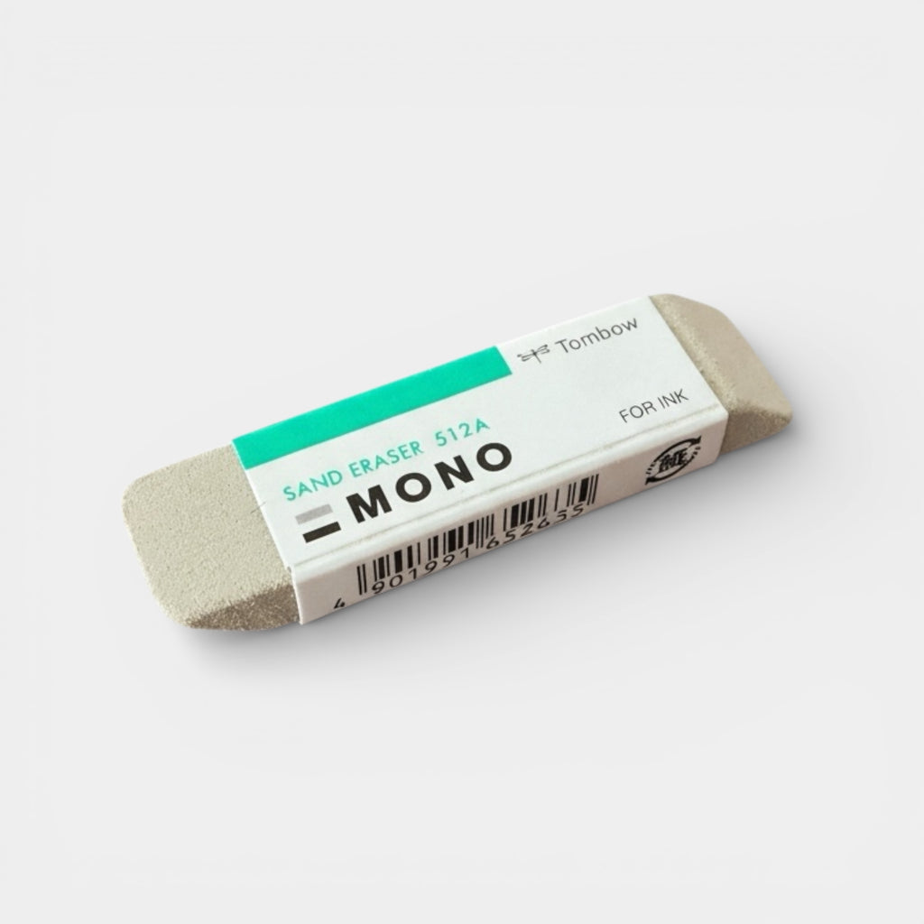 Goma de borrar de caucho natural con micro partículas de arena que eliminan eficazmente la tinta sin dañar el papel.