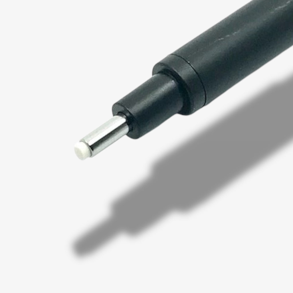 Borrador de precisión con punta redonda y sistema retráctil que mantiene la goma protegida entre usos.