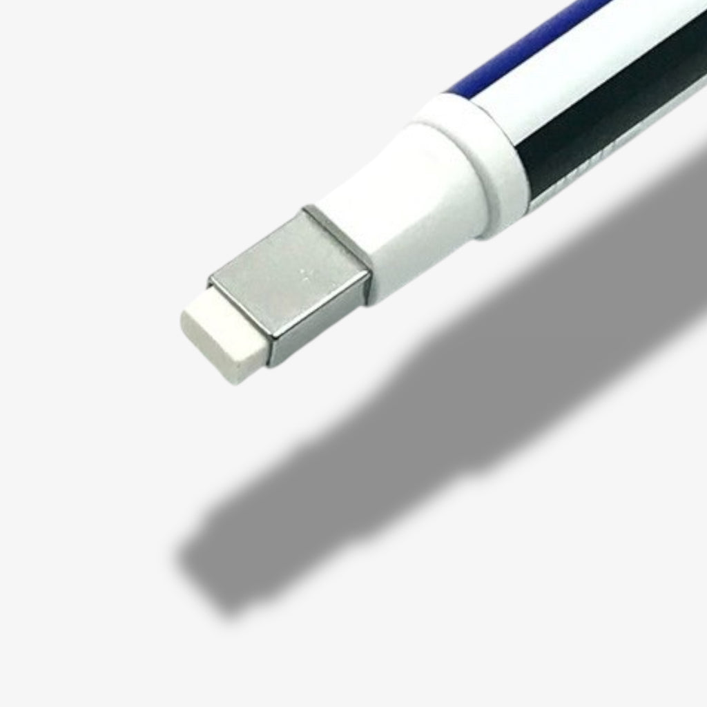 Goma de borrar retráctil de precisión quirúrgica que elimina marcas sin dañar el papel.