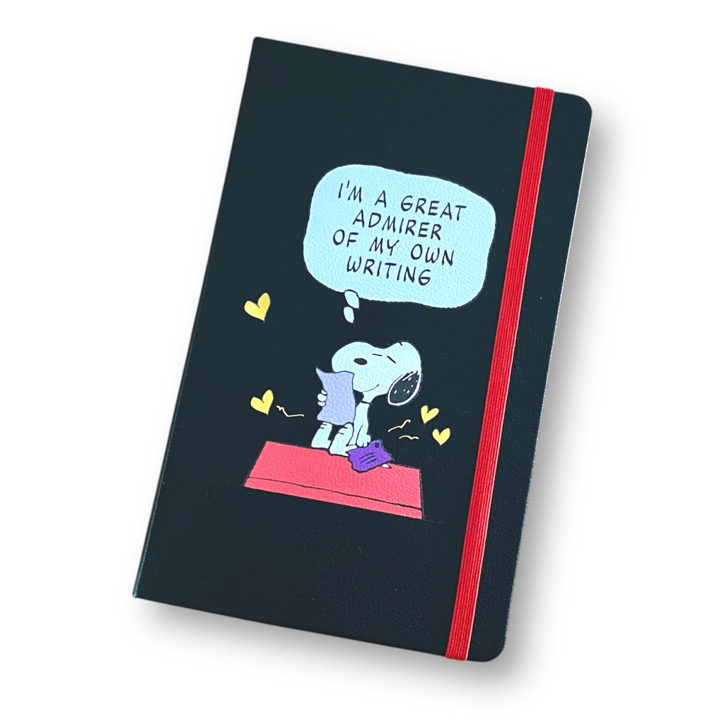 Diseñado tanto para apoyar la creatividad como para ofrecer funcionalidad, el cuaderno incluye pegatinas con la temática de Peanuts, un marcapáginas de papel y guardas personalizadas. Su tapa dura, el cierre elástico y los marcapáginas de doble cinta garantizan seguridad y organización para tus notas.